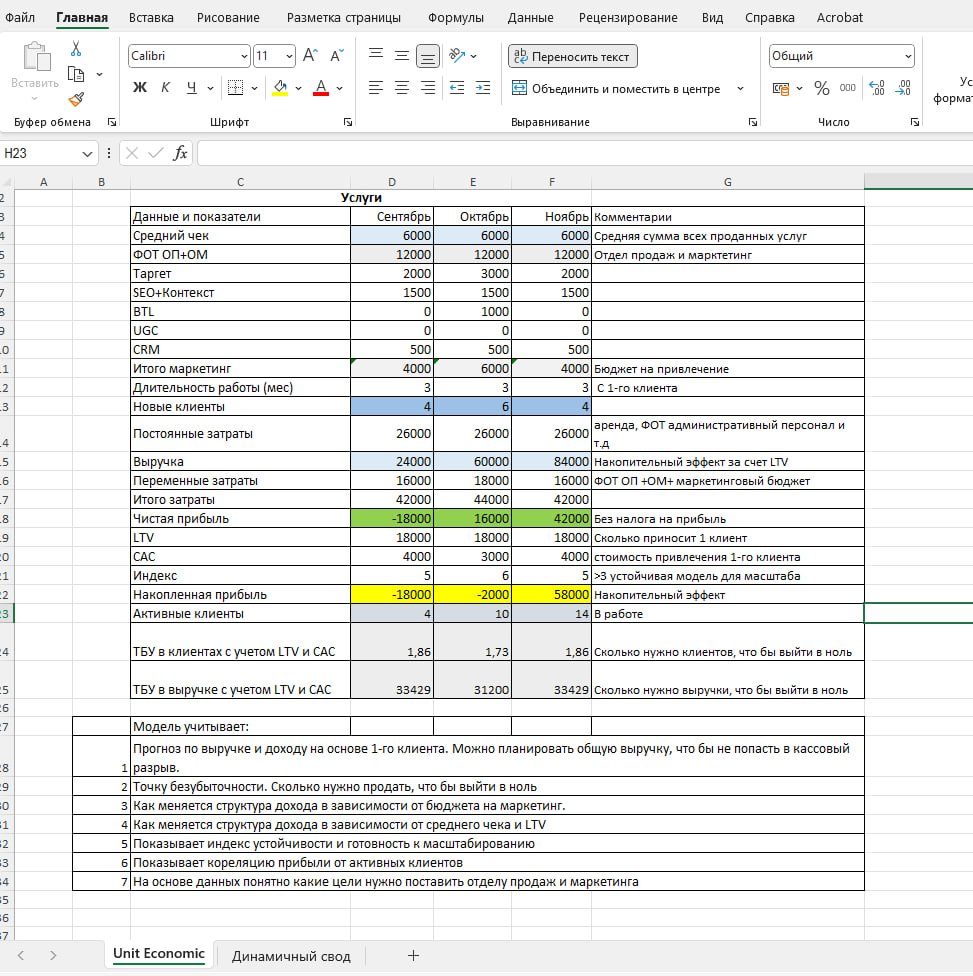 Ответьте на 2 вопроса и забирайте шаблон по Unit Economic